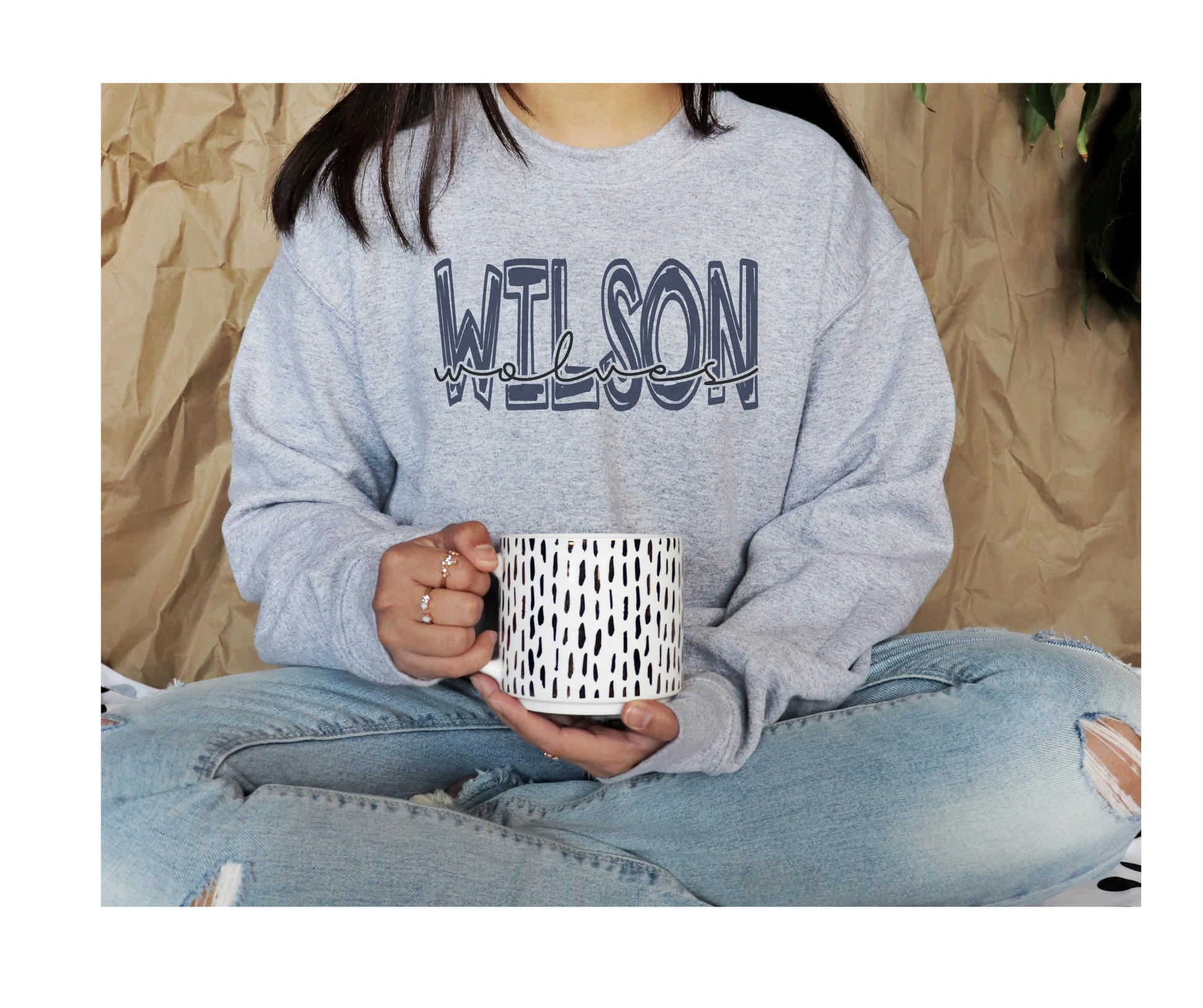 School Mascot Scribble Adult Ash Grey Sweatshirt